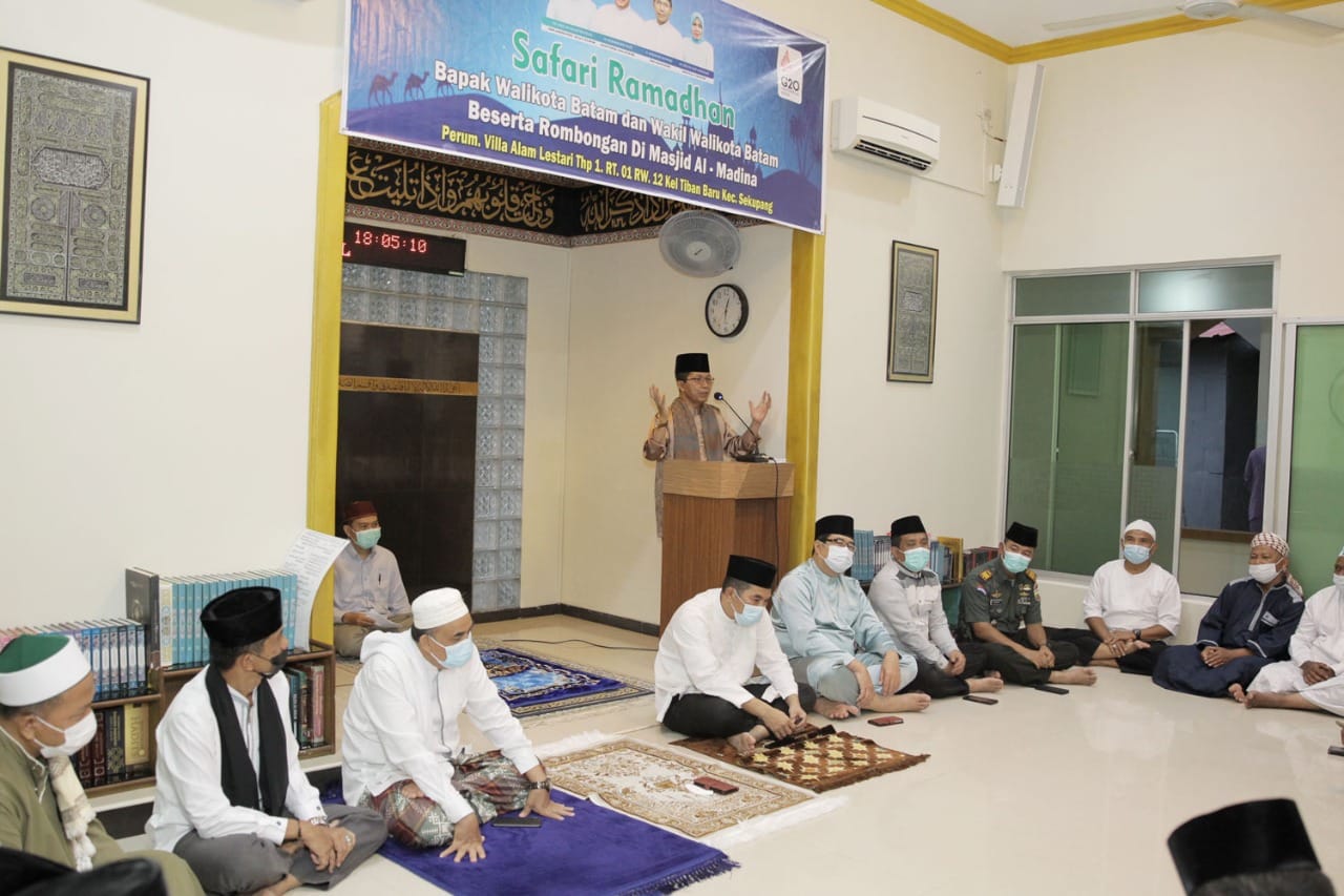 Batam I beritabatam.co : Kunjungan Wakil Wali Kota Batam, Amsakar Achmad ke Musala Nurul Abror, Tiban Baru, Sekupang, pada Kamis (07/0/22). Amsakar Achmad serahkan bantuan dari Pemerintah Kota (Pemko) Batam. Penyerahan dilakukan usai salat tarawih berjemaah dalam rangka safari Ramadan 1443 H.
