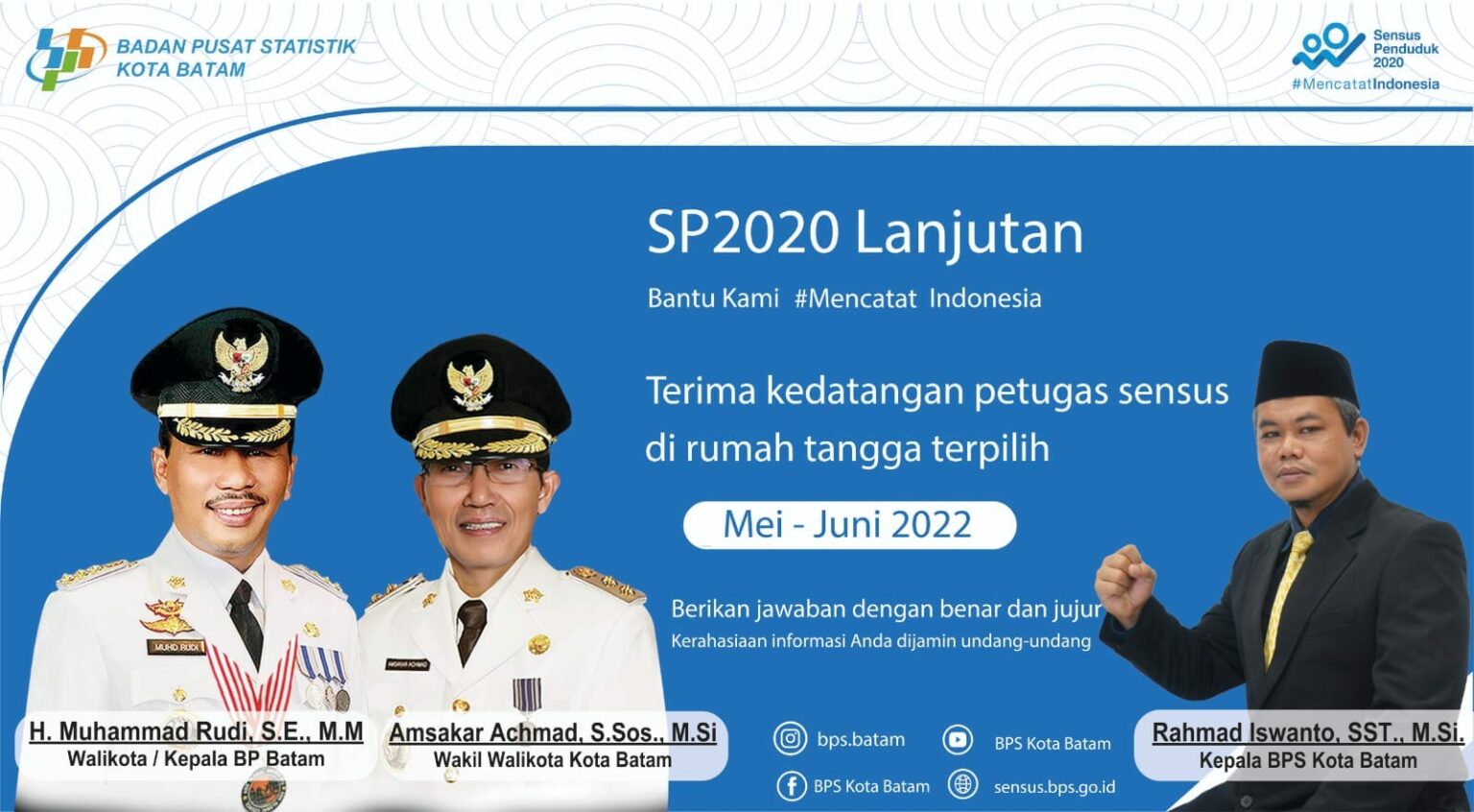 “Mari terima kedatangan petugas sensus di rumah anda,” harap Wali Kota Batam Muhammad Rudi.