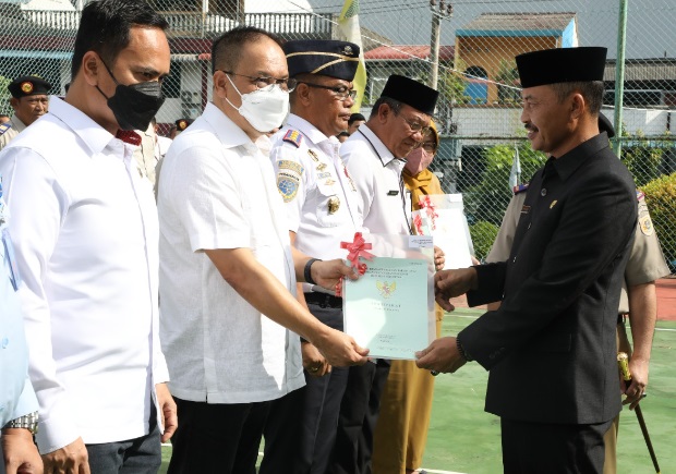 Penyerahan sertifikat ini merupakan rangkaian dari Peringatan Hari Agraria dan Tata Ruang, yang dilaksanakan pada pada Senin (26/9/2022), di lapangan upacara Kantor Wilayah Badan Pertanahan Nasional (BPN) Provinsi Kepulauan Riau.