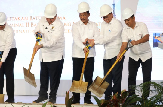 Batam I beritabatam.co : Memakai helm putih dan sekop berwarna emas, Kepala BP Batam, Muhammad Rudi, Menko Perekonomian Airlangga Hartarto dan Direktur PT. Blue Steel Industries, Benny Lau melaksanakan peletakan batu pertama proyek pembangunan PT. Blue Steel Industries di kota Batam, Jumat (24/06/22).