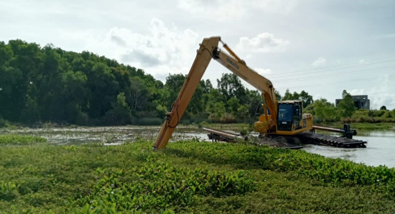 “Sekarang ini sudah ada satu ekskavator amphibi sedang bekerja dan ditambah dengan harvester,” jelasnya.