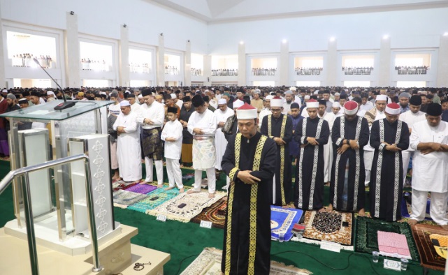 Suasana di pagi itu begitu khusyu’. Ribuan masyarakat muslim dari seluruh penjuru Kota Batam turut memadati masjid terbesar di regional Sumatera tersebut, dan dengan khidmat mengikuti seluruh rangkaian ibadah.