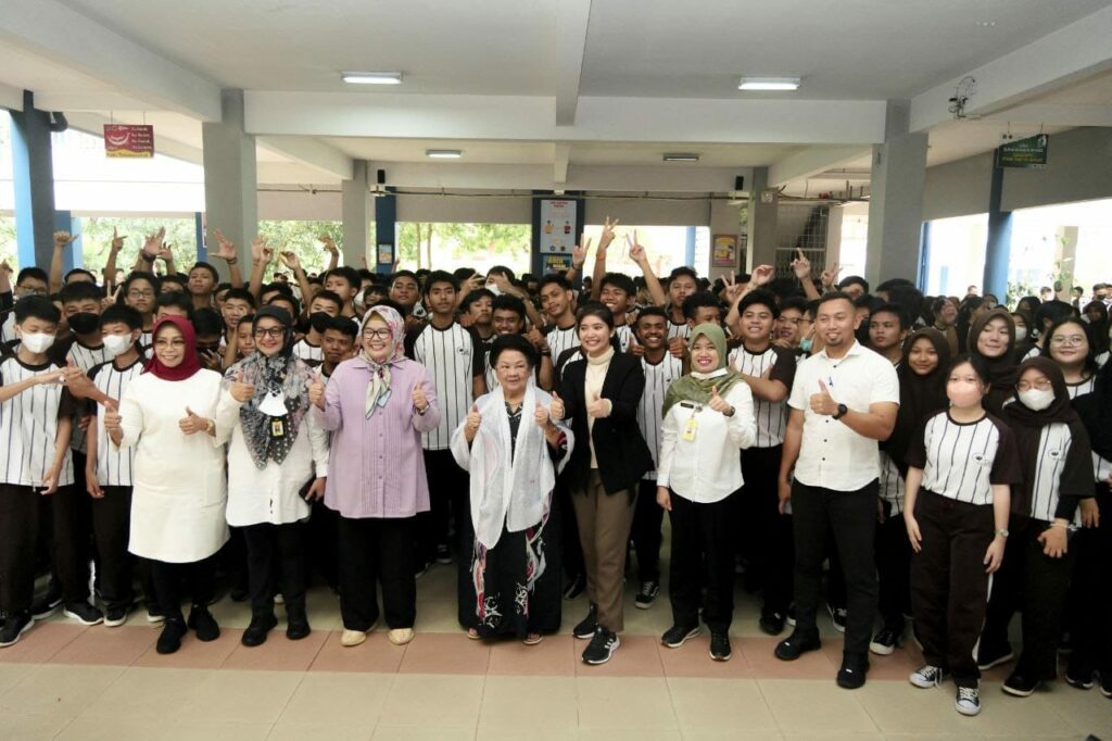 Saat tiba, Ketua PKK Kota Batam ini disambut meriah para pelajar dengan berbagai atraksi mereka. Gemuruh teriakan pelajar SMK Kartini disambut dengan semangat Wagub Marlin.