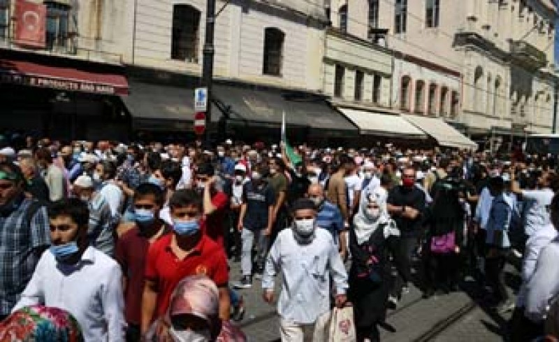 Umat Islam berbondong-bondong pulang usai mengikuti sholat Jumat di jalanan dan taman di sekitar Masjid Ayasofya, Istanbul, Jumat siang 24 Juli 2020. (Foto/Ngopibareng/Aulia Lukman Hakim)
