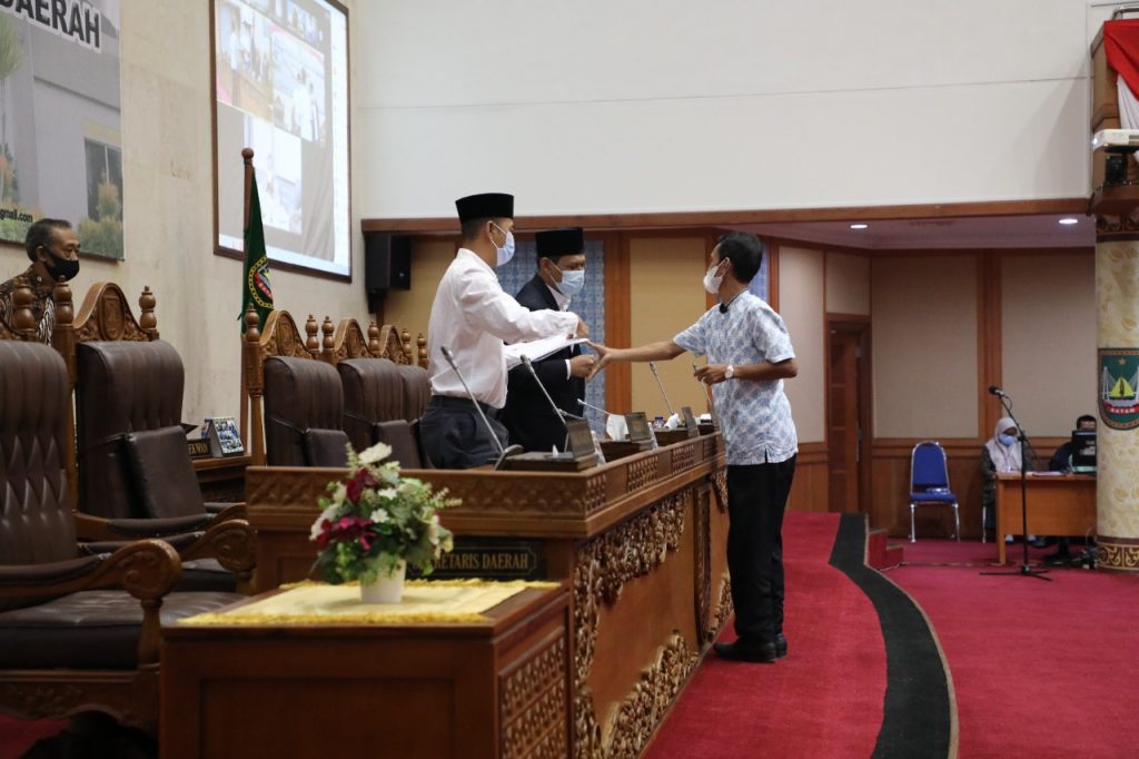 Walikota Batam, Rudi membacakan sejumlah poin yang disampaikan oleh sembilan fraksi sebelumnya.