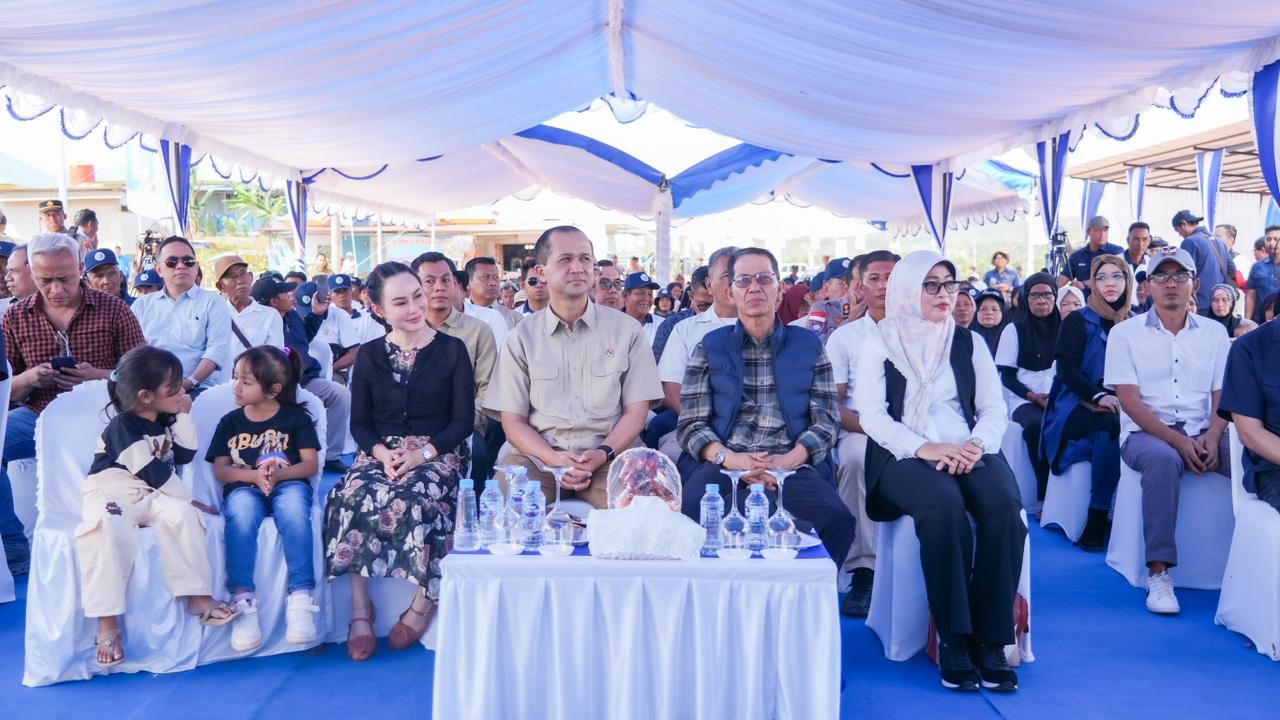 Kepala BP Batam, Amsakar Achmad dan Wakil Kepala BP Batam, Li Claudia Chandra menghadiri penyerahan bantuan perbekalan dan santunan nilai rumah asal kepada masyarakat transmigrasi lokal, di Tanjung Banun, Minggu (21/12/25). Foto: BP Batam